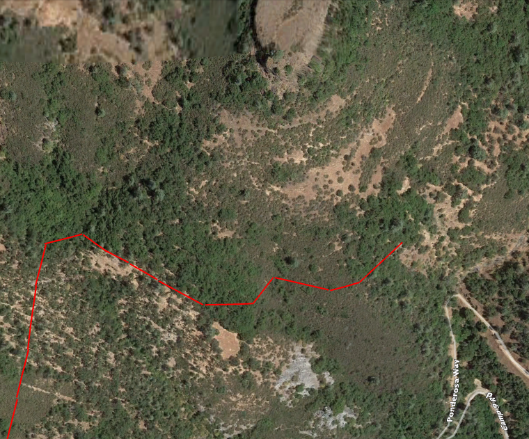 The GE screenshot at left is annotated with the 2150' elevation (red line) at the point the Cataract loop of Ancient Eldorado might intersect the exposed 2150 line. Hike up from the top of the Ponderosa loop where it leaves Camp Nine road to the 2150 elevation and then following the 2150 line with the hand held GPS. The horizon face of the soil/rock profile should be exposed somewhere along this line as the terrain is sharp and not flat and allowing samples to be taken from near the basement of limestone rock. Look for limestone rock(s) with the smooth yet distorted shapes associated with flowing water of streams and or cave formations. The traces of gold will be sparse here as the old river has entered the straight flow after dropping its burden of gold in the bulging curve several hundred yards upstream of this sample line. At some point in the future, the great curve of the Cataract will be mined using a drift from the closest 2150' point to the center of the inside curve. Considering the cost of modern mining methods, the rewards should pay well with gold over USD $1000/ounce. The lower portion of the Cataract formation shown here is just off the BLM boundary. However, the leading portion of the Cataract curve and all of the of curve at the top of Yea Yoo gulch is BLM property subject to claim. |