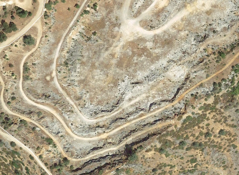 ![]() The above image is the lower half of the abandoned Calaveras Cement limestone quarry just below the Cataract Gulch. The quarry was in operation only about 10 years and in it's final years was actually a placer gold mine posing as a limestone/cement quarry. A minor amount of gold was reported here. The new Stanislaus cut down through the Eldorado and left several narrow channels with gold eroded from the Eldorado just above. The channels are at 1940' some 200 feet below Eldorado. This is very similar to the river geology that created the bonanza at Mokeloumne Hill. It's only importance is that it helps mark the path of Eldorado. |