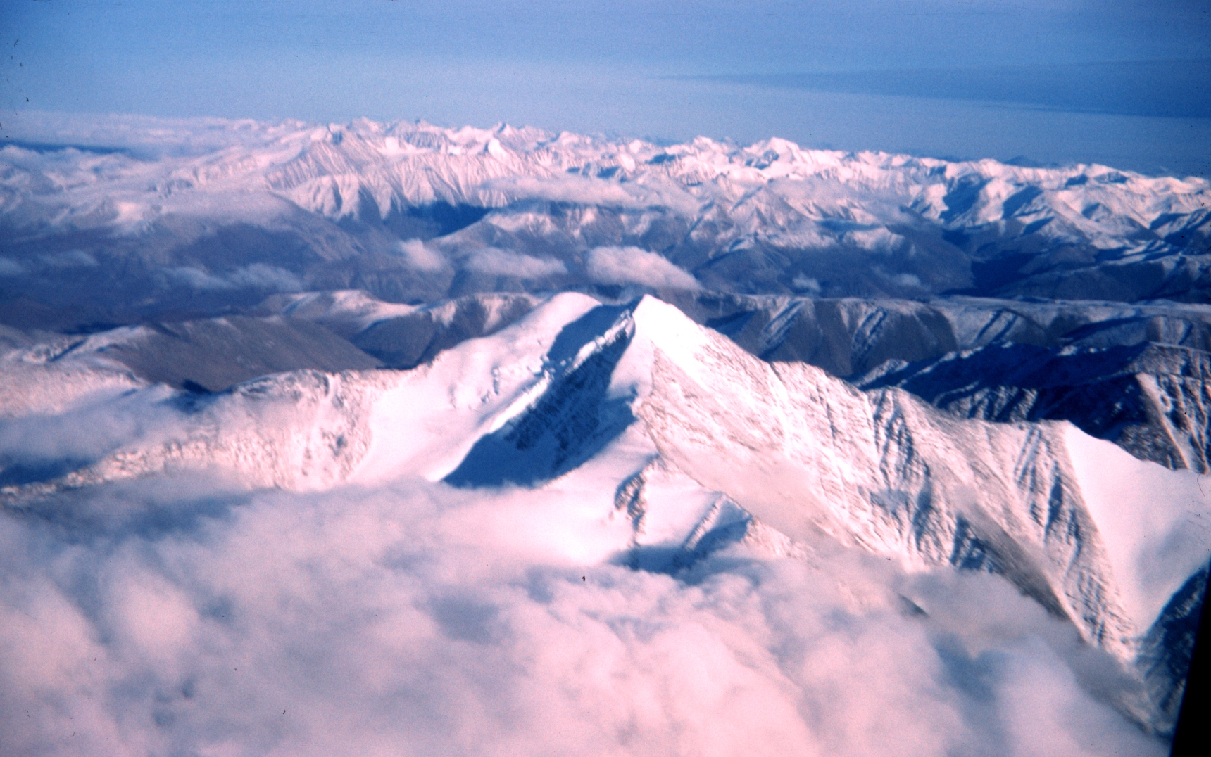 | Hydrology Concept | Water District Managers recognize mountain snowpack as the premium water storage source. It is a high quality water especially important for California farmers and Northwest fisheries. The ski industry and municipal water systems also benefit. By denying heavier rainfall amounts from developing storm cells at the lower altitudes, the AquariusRadar allows the addtional moisture to climb the Sierran, Klamath, and Cascade mountain slope until stopping it's operations on cells as they approach the snowline. Hence, storm cells that may have produced high water in lowland streams now have more moisture available to precipitate as snow as the cell passes the snowline altitude on thier way to the mountain chain crest. It's important that the natural vertical developement of storm cells is allowed to continue until just prior to rain beginning to fall. The AquariusRadar microwave heating action slows the last stages of development of the target cell in the flood watershed, allowing nearby competing cells at higher elevation to take up the excess moisture. The transit period is long enough to allow the competing rain cell (snow squall) to the snow line with added moisture provided by the inhibited rain cell. Note that a flood condition is required in the lowland streams. Coastal flood conditions of the West Coast is often associated with atmospheric rivers. Cloud seeding, with the aid of AquariusRadar, can now show full potenial for increasing snowpack in selected areas of the Sierra Nevada, Klamath, Northwest Cascades, Snake River basin, Colorado Plateau, and other regions of the Intermountain West. | Photo courtesy 1268, NOAA Corps Collection, Coast and Geodetic. Photo Date: July, 1953. Photographer: Rear Admiral Harley D. Nygren, NOAA Corps (ret.) |